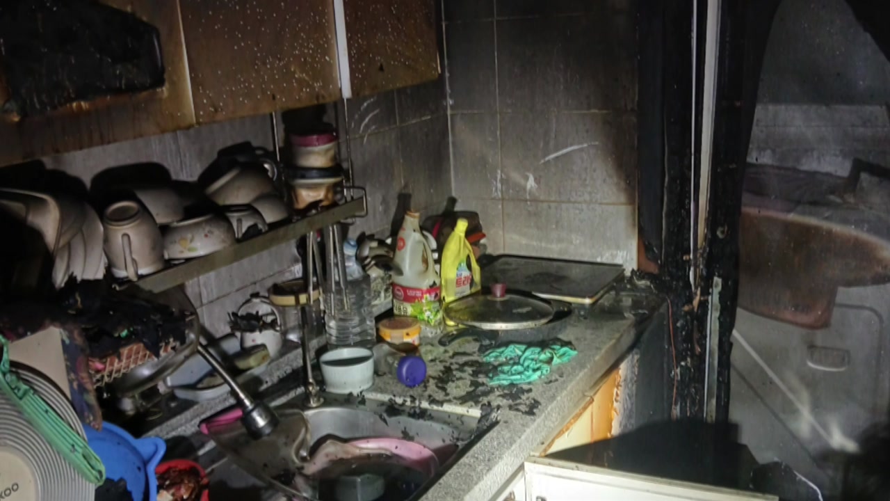 소방은 싱크대 앞쪽 바닥에서 불이 난 것으로 보고 정확한 화재 원인을 조사하고 있습니다.