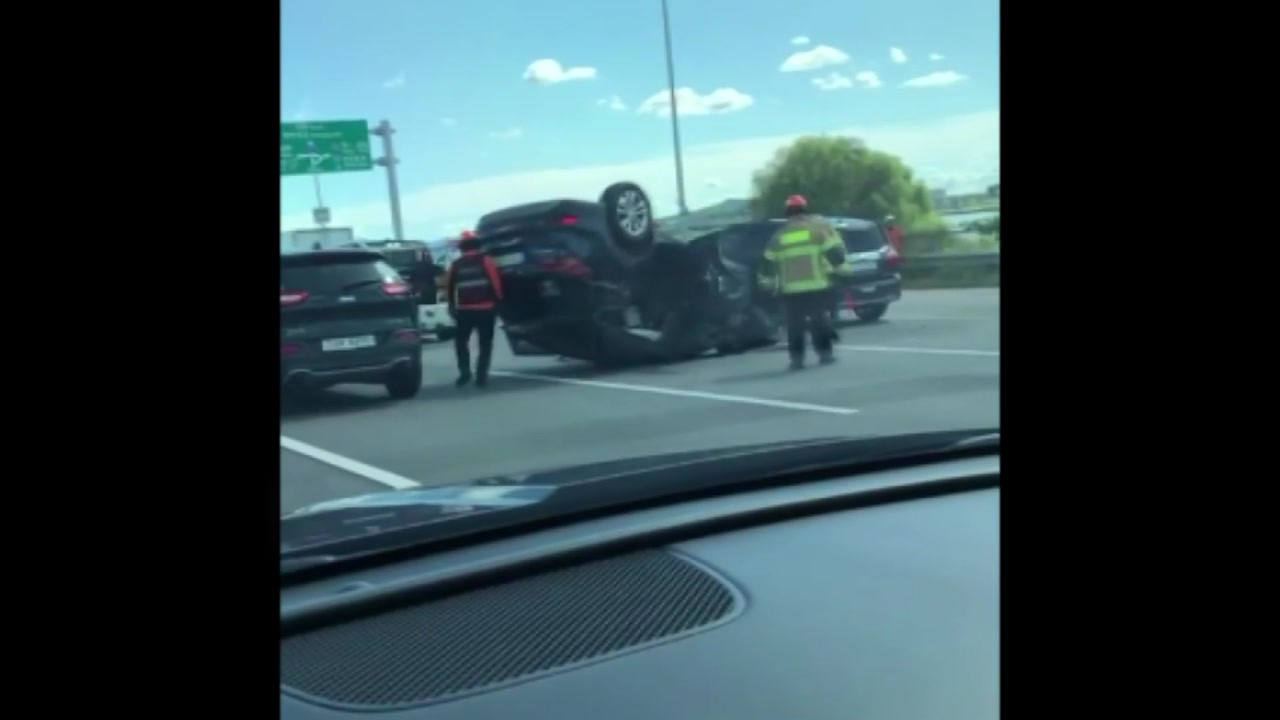 오늘(21일) 낮 12시 55분쯤 경기 고양시 신평동 자유로에서 서울 방면으로 달리던 SUV 차량이 앞서가던 차를 들이받고 뒤집혔습니다.