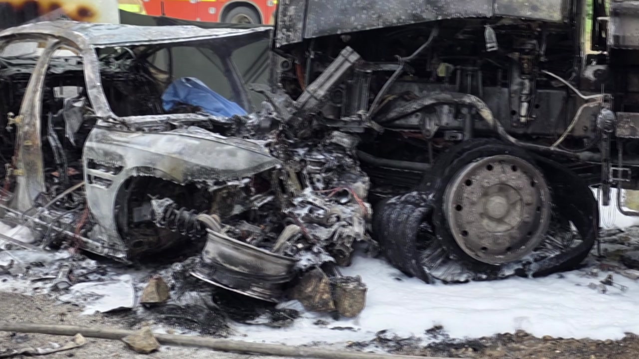 사고 충격으로 두 차량 모두 불이 번지면서 승용차 운전자 60대 남성이 숨지고 동승자도 치료를 받고 있습니다.