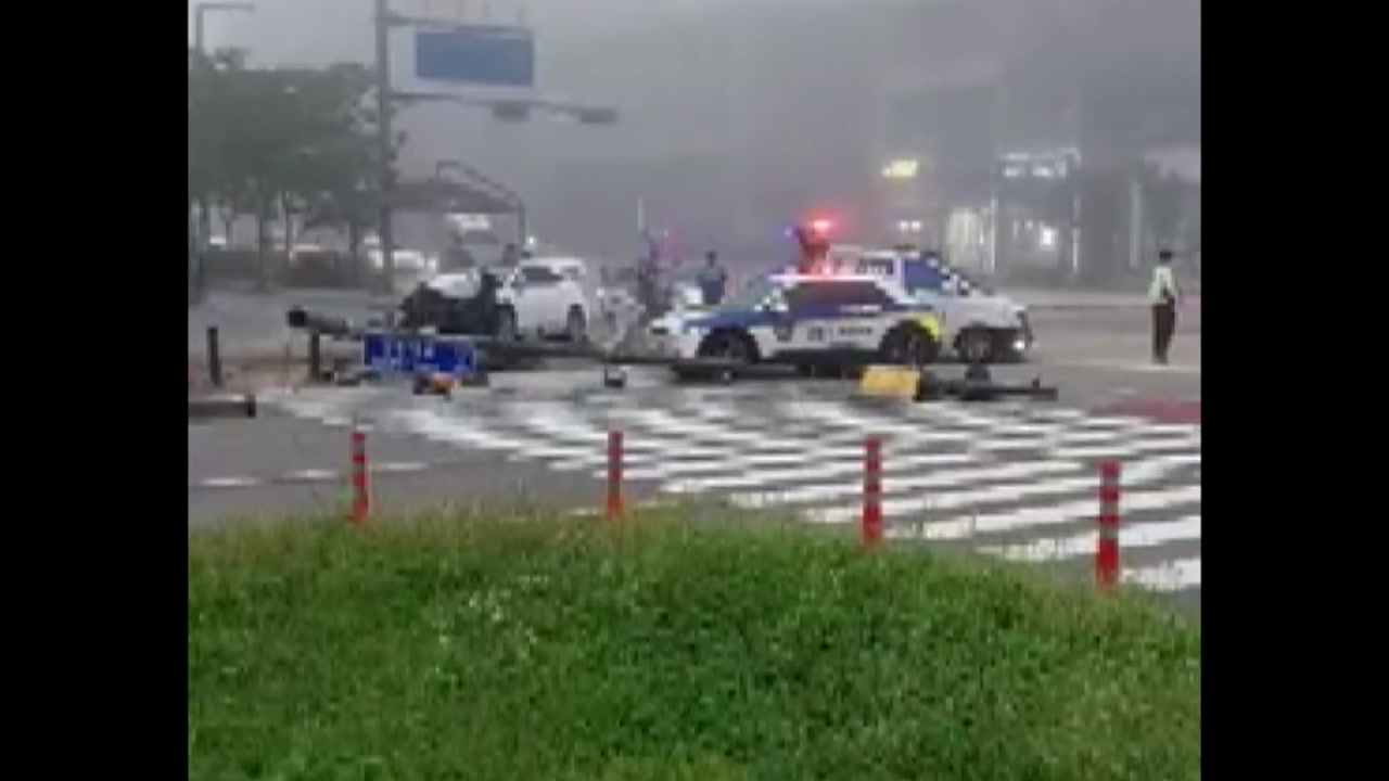 오늘 새벽 6시 10분쯤 경기 화성시 동탄역 인근 사거리에서 우회전하던 승용차가 신호등을 들이받았습니다.