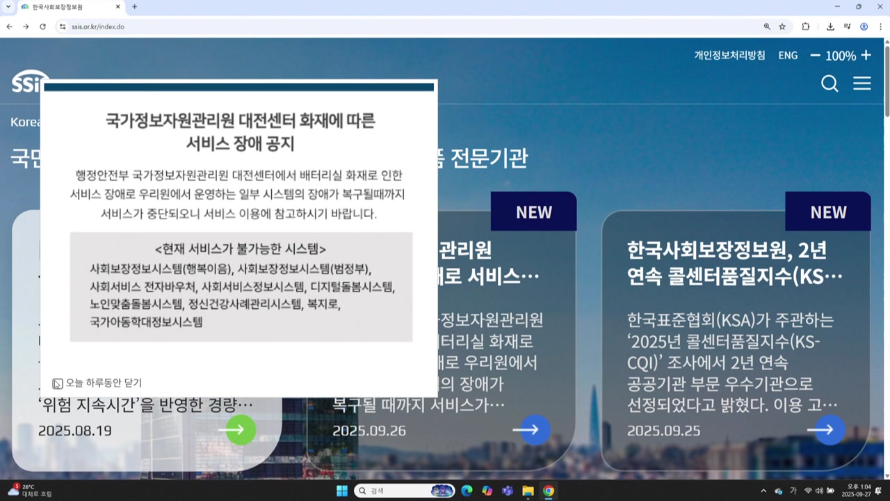 국가정보자원관리원 화재로 정부 시스템 곳곳의 접속이 어려움을 겪고 있습니다.