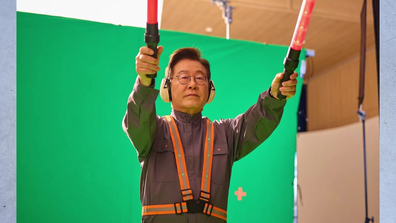 경광봉을 들고 보조하는 항공기 유도원, 이재명 대통령입니다.
