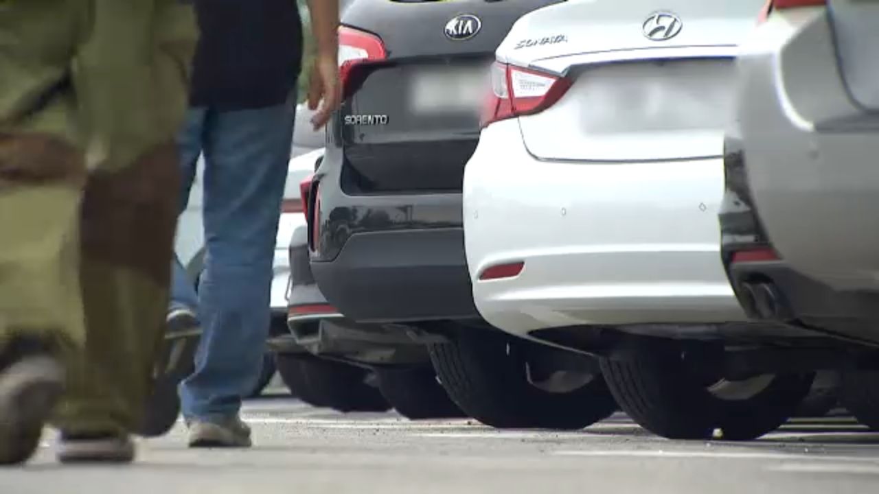 몇몇 차량은 잠시 비상 깜빡이를 켜고 다른 차량이 나가기를 기다립니다.