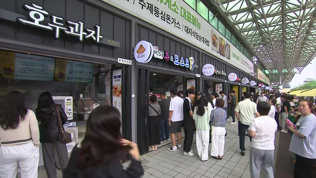 점심 시간이 지난 오후에도, 휴게소 간식 판매대의 인기는 식을 줄 모릅니다.