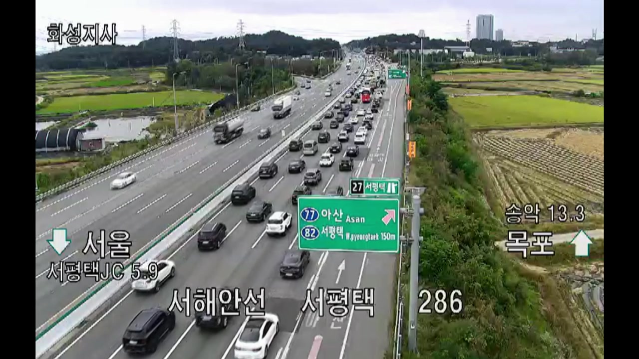 왼쪽이 하행선인데, 차량이 길게 늘어선 모습 보실 수 있습니다.