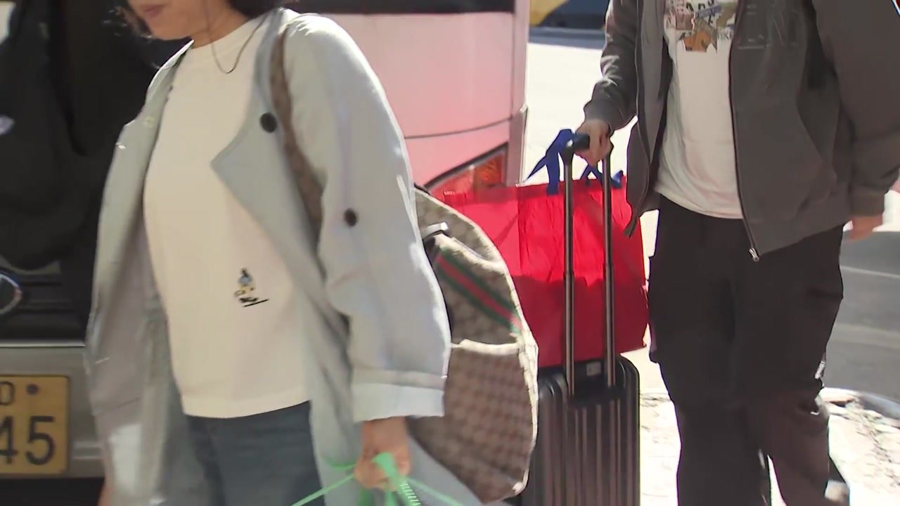 대부분 가벼운 차림에 여행 가방을 들고 택시나 지하철로 향하고 있습니다.
