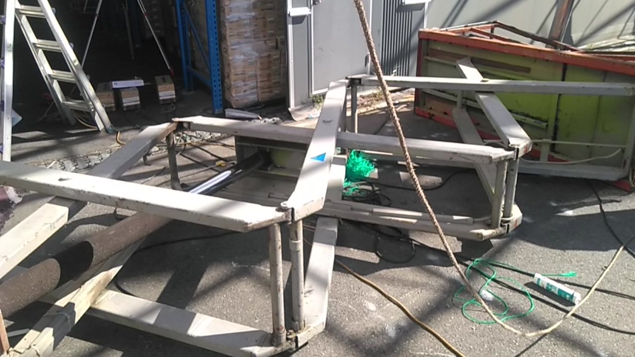 철골 구조물에 천막을 씌우는 과정에서 타고 있던 고소작업대가 넘어졌는데, 50대와 30대 남성이 다쳐 치료를 받고 있습니다.