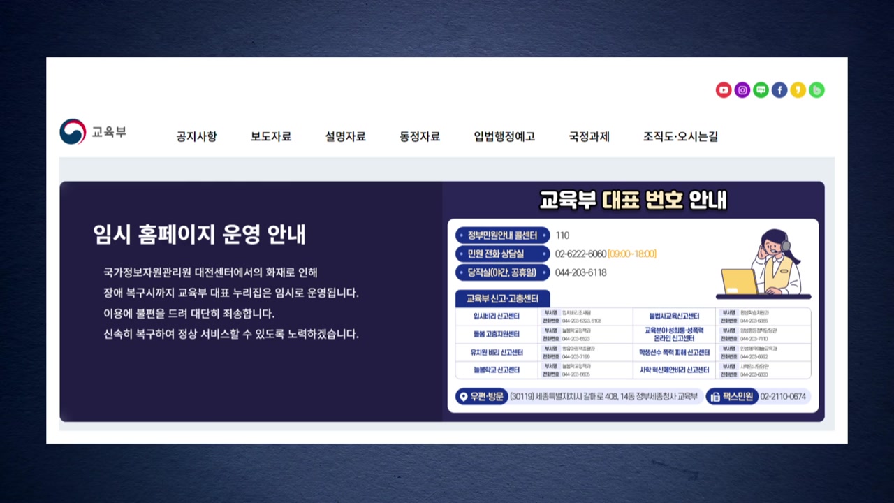 국가정보자원관리원 화재 피해로 이용이 중단된 교육부 홈페이지가 임시로 열렸습니다.