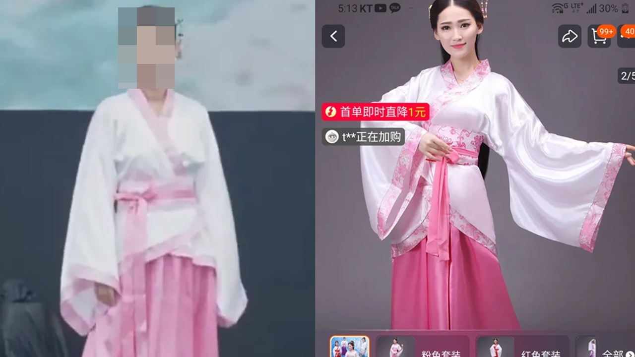 함께 첨부된 패션쇼 의상은 실제 타오바오에서 판매되고 있는 코스프레 의상과 흡사했다.