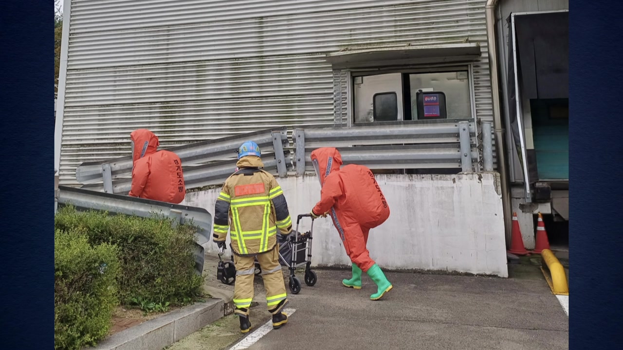 소방 당국은 냉동기계에서 암모니아 가스가 나오고 있다는 물류센터 노동자의 신고내용을 바탕으로 정확한 누출 위치와 원인을 조사하고 있습니다.