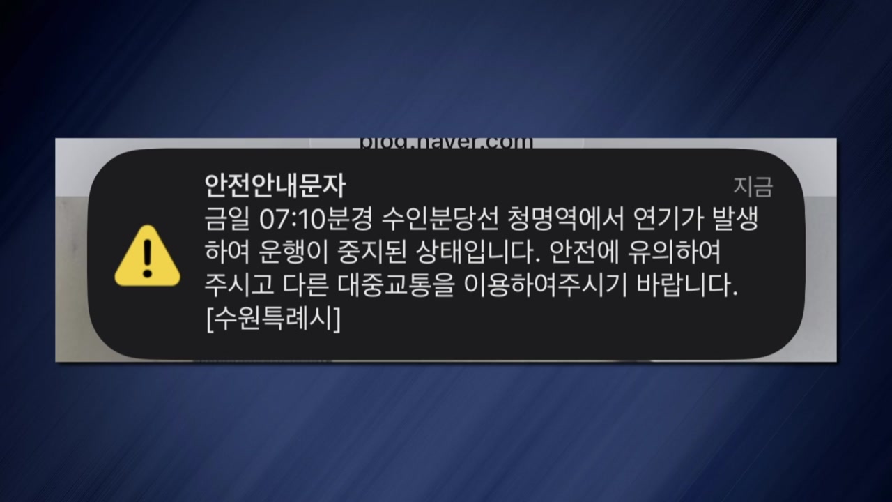 오늘(18일) 아침 경기 수원 청명역에서 연기가 난다는 신고가 접수돼 한때 열차 운행이 중단됐습니다.