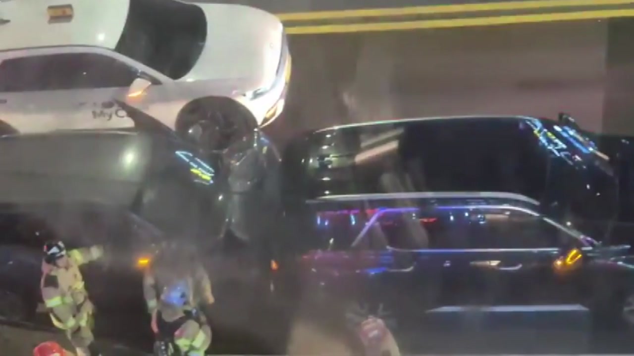 어젯밤 서울 강북구에서 택시와 승용차, SUV 등이 잇달아 부딪혀 5명이 다쳤습니다.