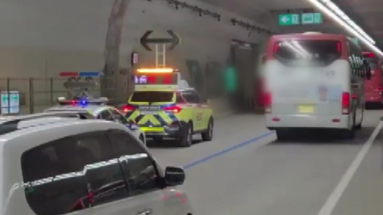 오늘(25일) 아침 8시 반쯤 경기 화성시 오산동에 있는 경부고속도로 동탄 터널에서 부산 방향으로 가던 관광버스가 앞서가던 다른 관광버스를 들이받았습니다.