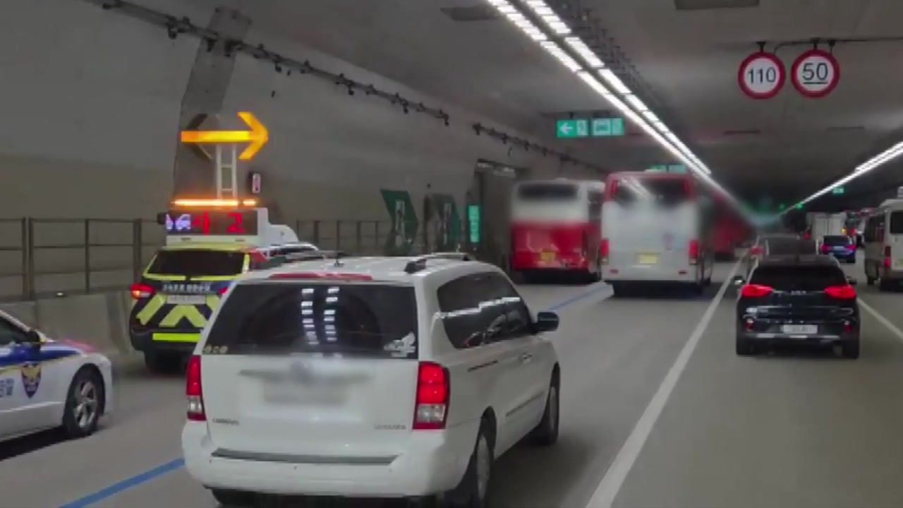 오늘(25일) 아침 8시 반쯤 경기 화성시 오산동에 있는 경부고속도로 동탄 터널에서 부산 방향으로 가던 관광버스가 앞서가던 다른 관광버스를 들이받았습니다.