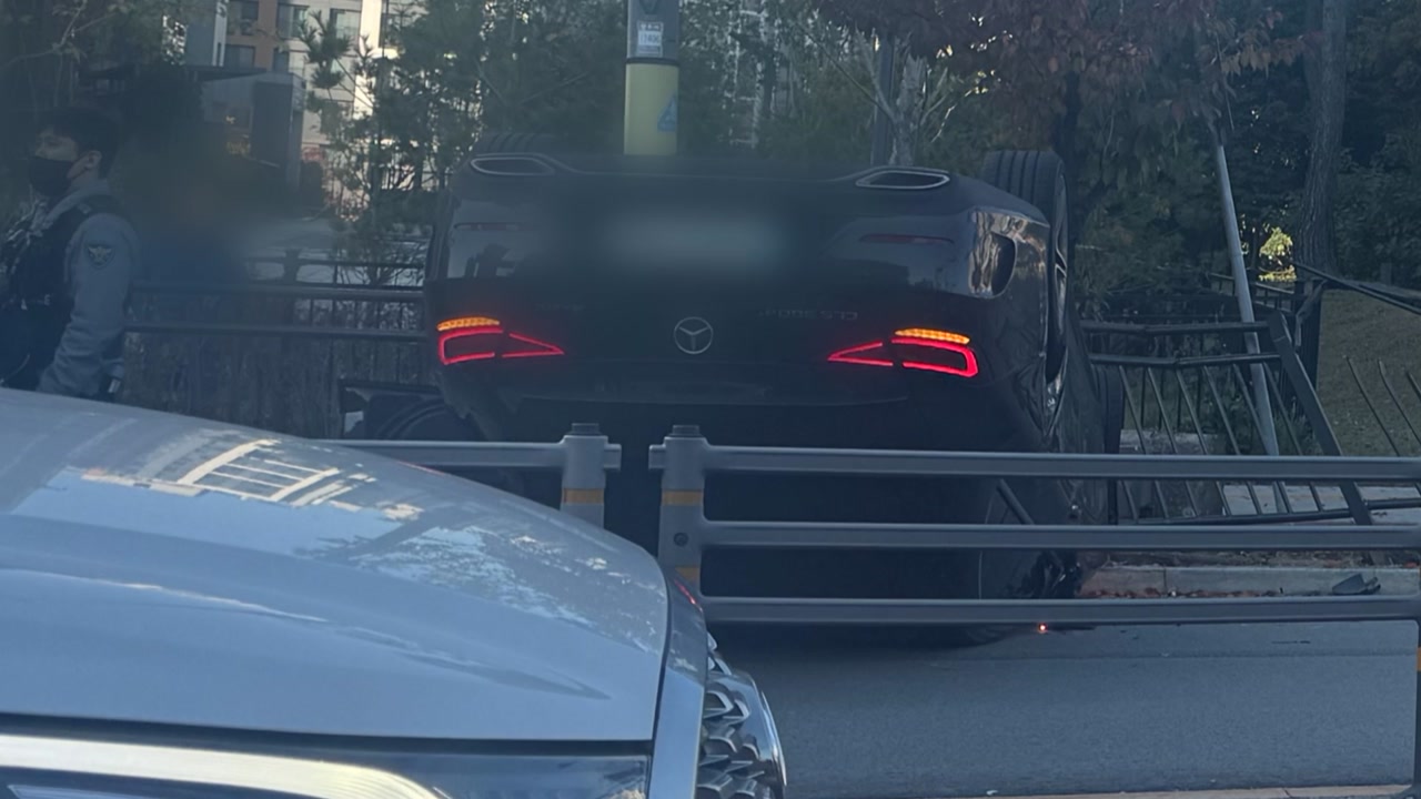 오늘(27일) 아침 8시 40분쯤 경기 양주시 옥정동에 있는 중학교 근처 사거리에서 승용차 한 대가 보호 난간을 들이받았습니다.