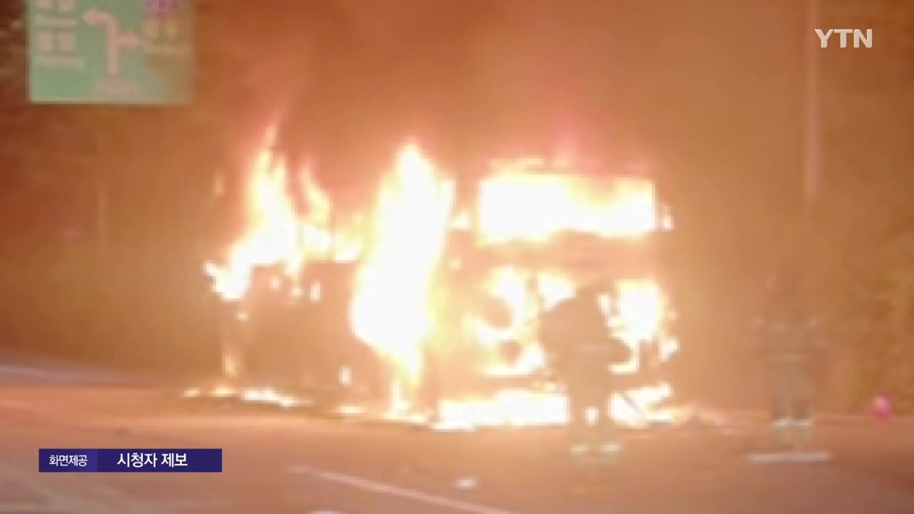 해당 버스는 운행을 마친 뒤 차고지로 돌아가고 있었던 상황이라 다친 사람은 없었고 불은 버스를 모두 태운 뒤 40여 분 만에 꺼졌습니다.