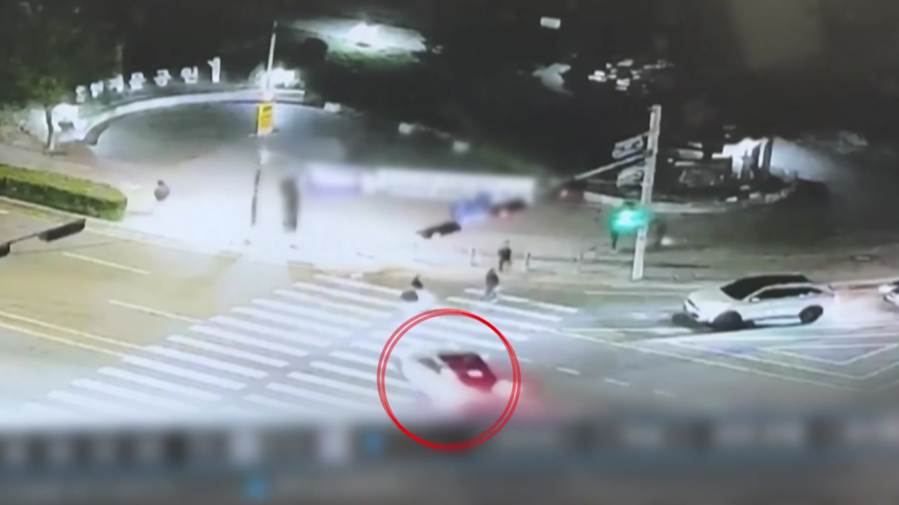 깜빡 깜빡 파란불이 빨간불로 바뀔 즈음, 흰색 SUV 한 대가 빠른 속도로 인도를 향해 돌진합니다.