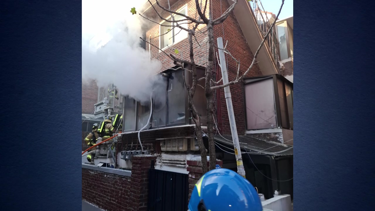 주택 1층 깨진 창문 밖으로 하얀 연기가 피어납니다.