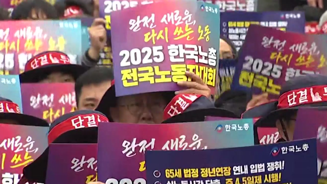 한국노동조합총연맹과 전국민주노동조합총연맹은 오늘 오후 여의대로와 동대문디자인플라자 앞에서 각각 전국노동자대회를 열고, 정년 연장과 근무시간 단축 등을 촉구했습니다.