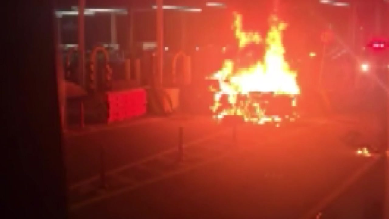오늘(12일) 새벽 0시 50분쯤 경기 구리시에 있는 구리-포천고속도로에서 SUV 차량이 갈매동구릉요금소를 들이받는 사고가 났습니다.