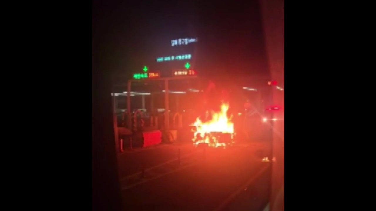 고속도로 진입로에서 시뻘건 불길이 치솟습니다.