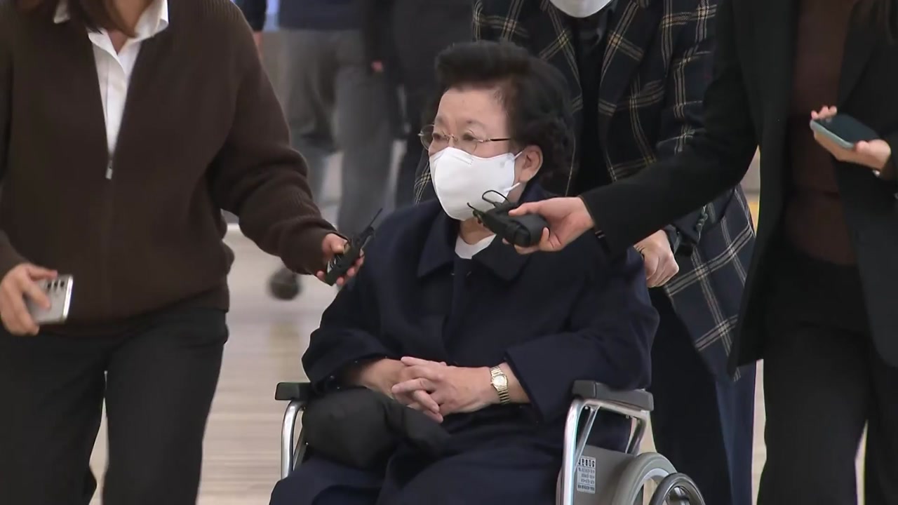 이번에도 휠체어를 타고 등장했는데, 인사청탁 한 적 있는지를 묻는 기자들에겐 답하지 않고 고개를 흔들기만 했습니다.