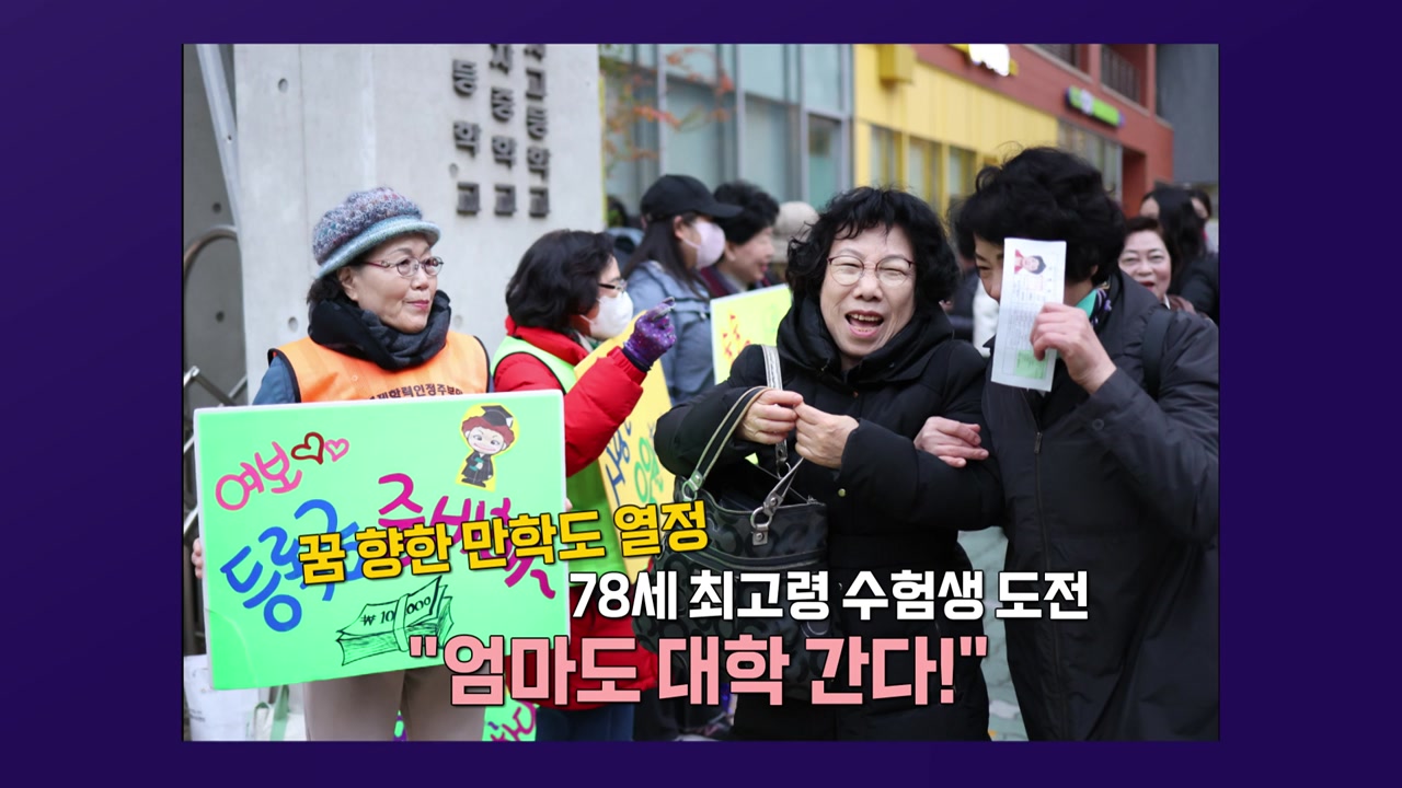 "엄마도 대학 간다", "여보 등록금 준비해" 재치있는 응원 플래카드와 함께 뜨거운 학구열을 보여준 만학도들, 오늘 하루, 꿈을 향해 한발 더 나아갔습니다.
