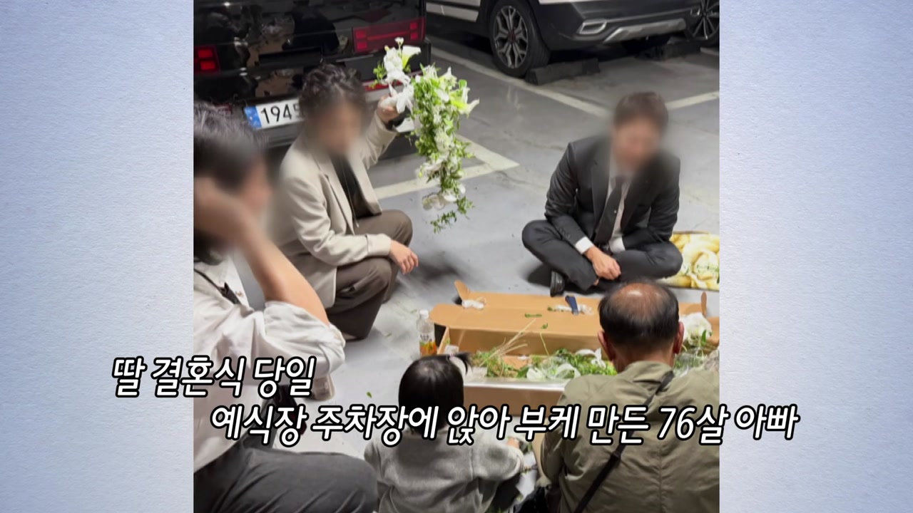 딸 결혼식 당일 예식장 주차장에 앉아 부케 만든 76살 아빠