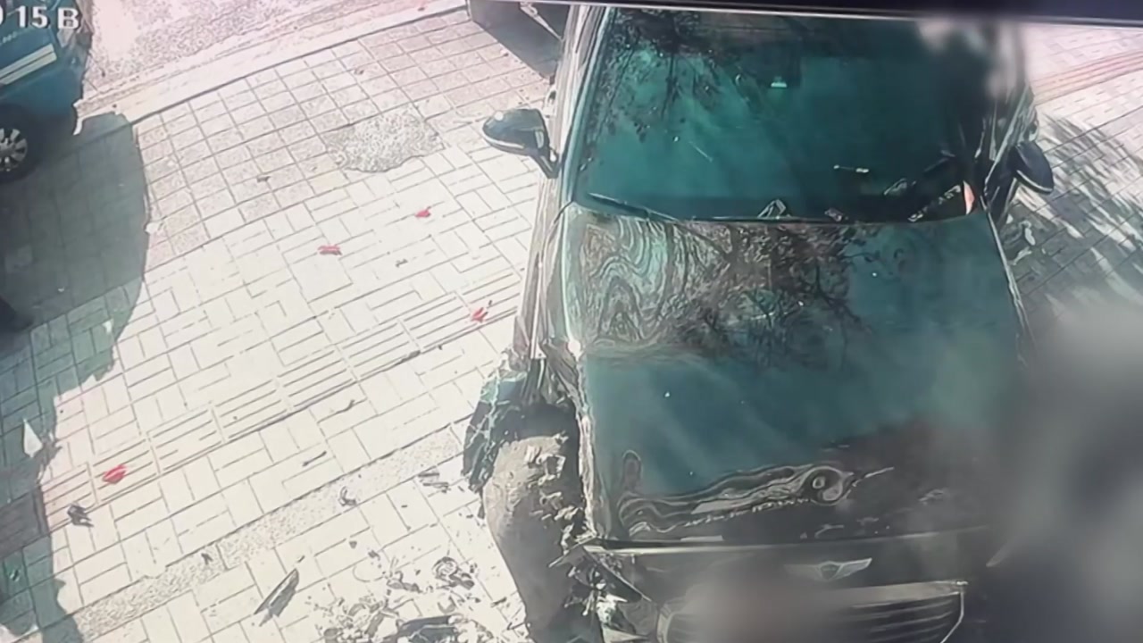 당시 차량은 차단기를 부수고 건너편 인도로 돌진했습니다.