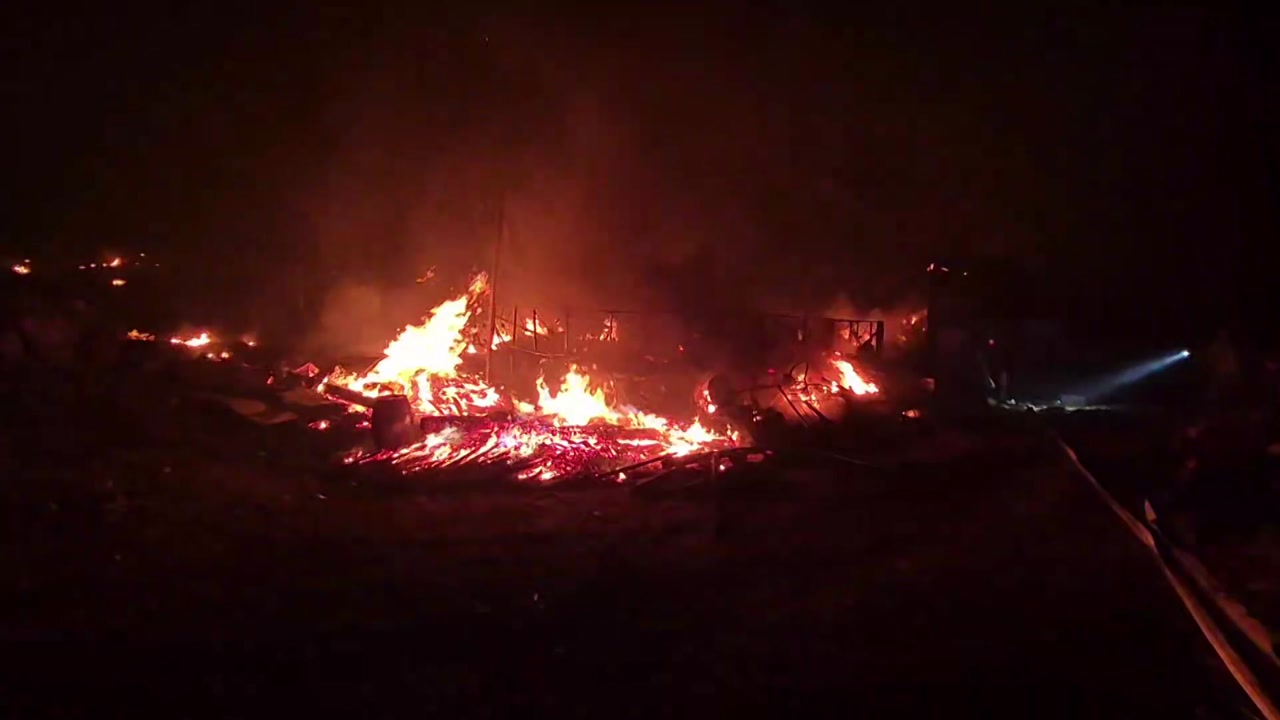 멀리 산 쪽으로 붉은 불길이 선명하게 보이실 겁니다.