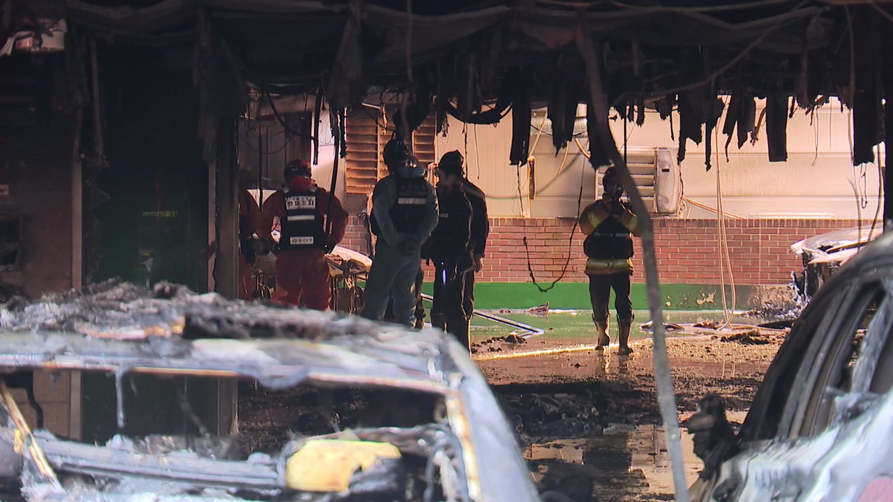이 가운데 52명이 연기를 마셔 병원에 옮겨졌고, 주차장에 있던 차량 18대가 완전히 탔습니다.