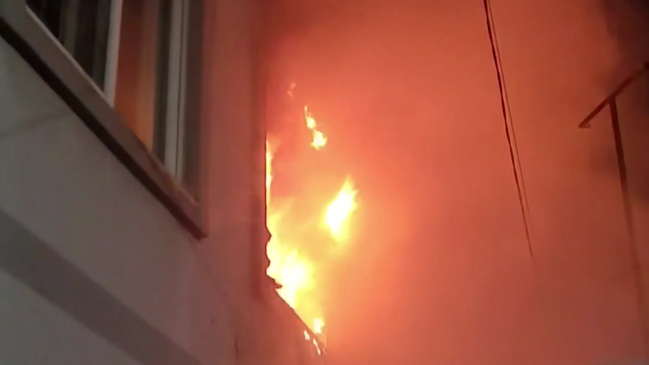 창문 밖으로 시뻘건 불길이 치솟고, 희뿌연 연기가 피어오릅니다.
