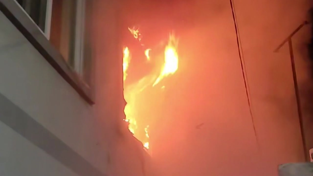 창문 밖으로 시뻘건 불길이 치솟고, 희뿌연 연기가 피어오릅니다.