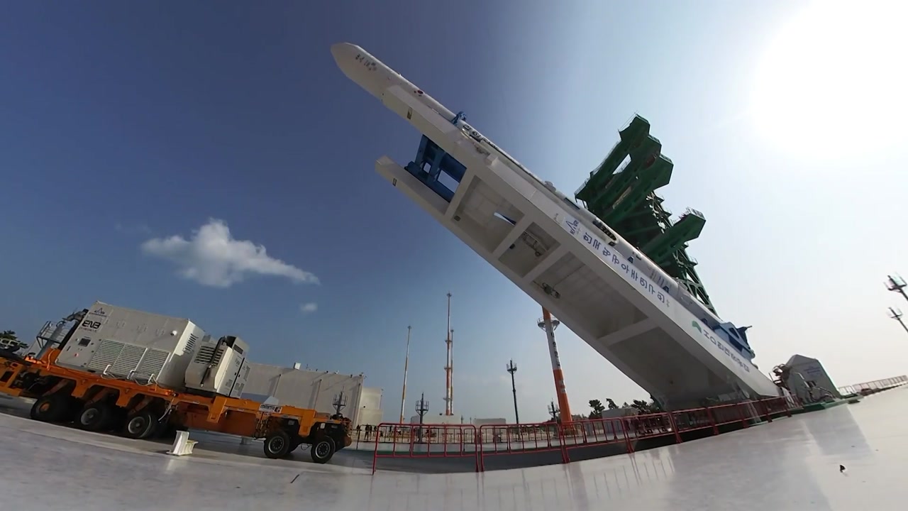발사대에 도착한 지 3시간 채 안 돼, 누리호는 하늘을 향해 섰습니다.