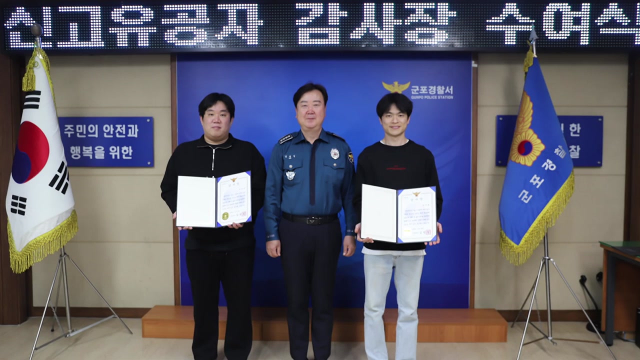경기 군포경찰서는 맨발로 골목을 헤매던 3살 아이를 본 뒤 경찰에 신고하고 안전하게 보살핀 시민 두 명에게 감사장을 수여했습니다.