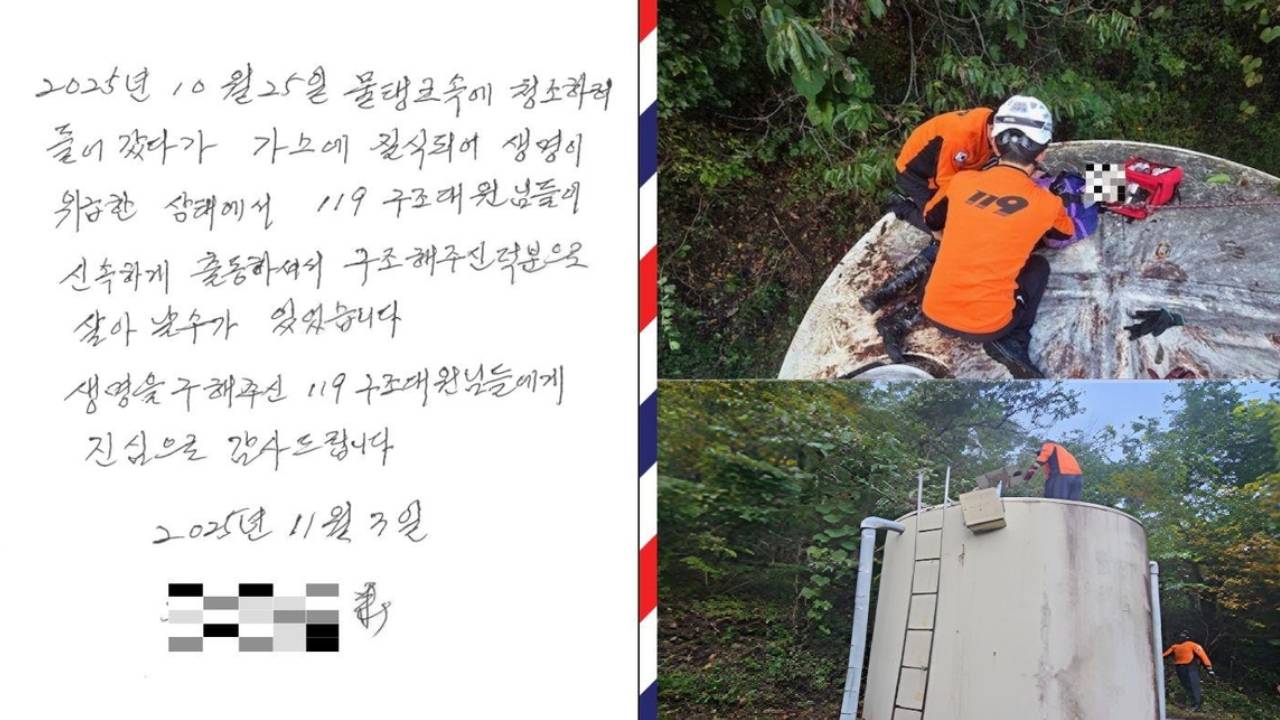 B 씨는 "119 대원들의 신속한 출동과 구조 덕분에 살아날 수 있었다. 생명을 구해준 대원들에게 진심으로 감사드린다"라고 전했다.