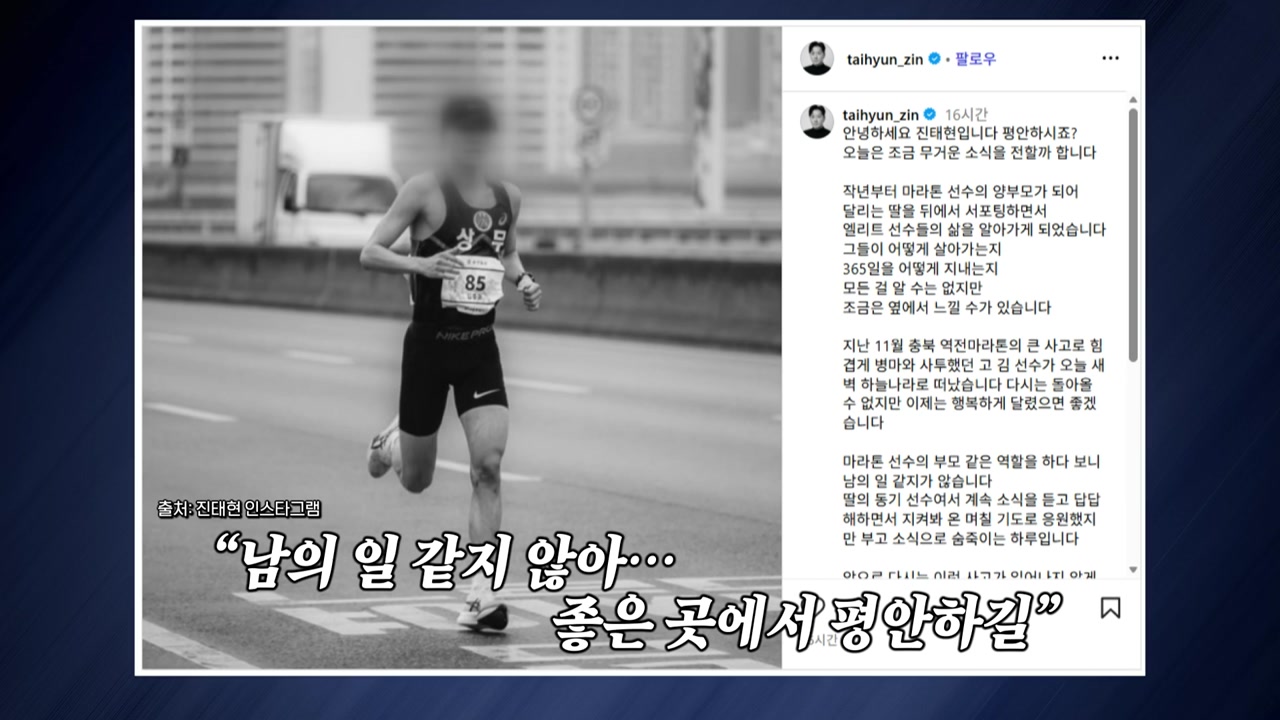 배우 진태현 씨는 양딸이 엘리트 마라톤 선수라며 남의 일 같지 않다고 추모글을 올렸는데요.