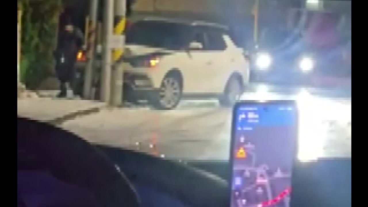 목격자는 SUV가 눈길에 미끄러진 것으로 보인다고 말했습니다.