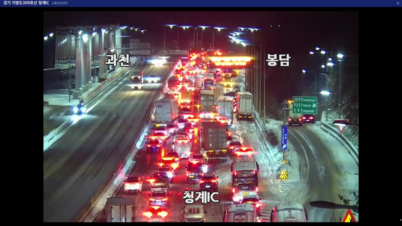 특히, 경기 과천봉담도시고속화도로가 제설작업이 원활하지 않아 많은 차량이 도로 위에 갇혀 있습니다.