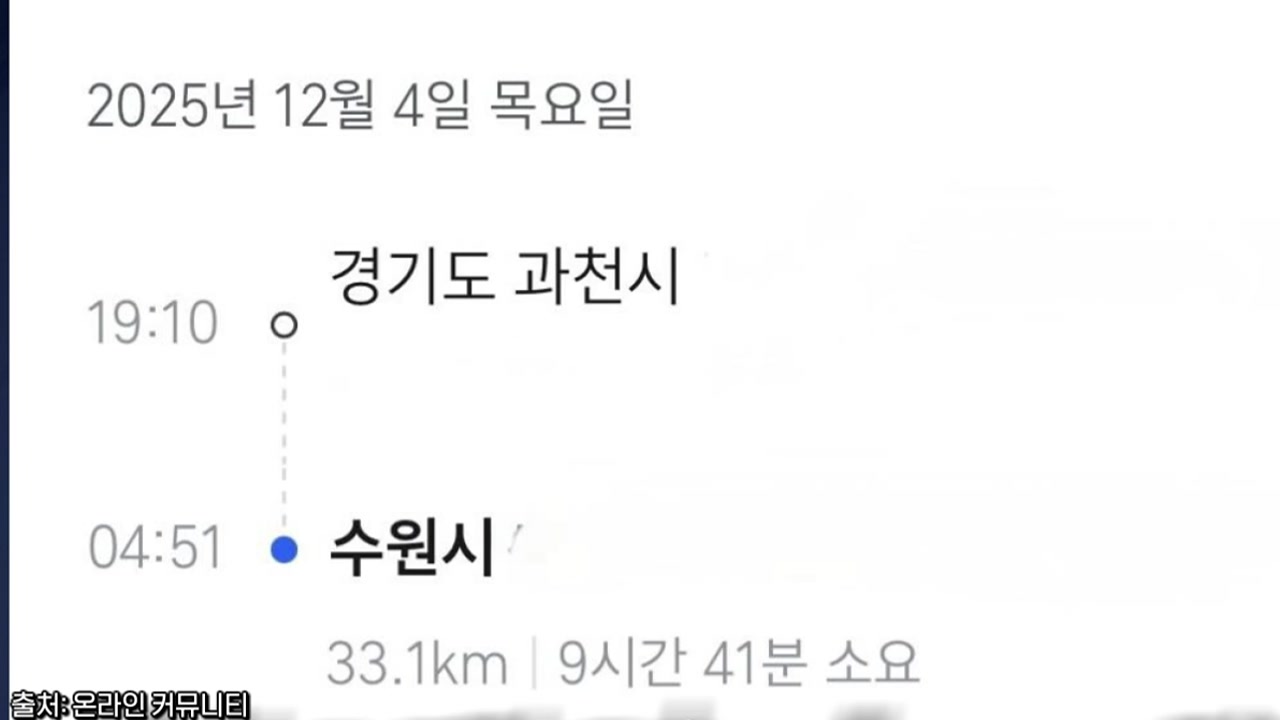 글쓴이는 실제 오후 7시에 출발해 새벽 5시에 도착했다며 무려 10시간에 달한 퇴근길을 인증했습니다.