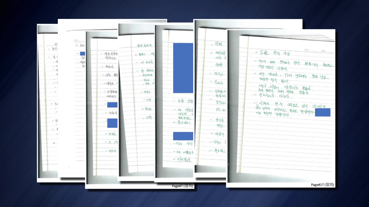 이어 다음 장에는 특검 수사관들이 "반말과 험한 소리로 무시하고 구박한다"며 강압적인 조사 분위기에 대해 적었는데, "짜인 각본에 넘어가는 것 같다"고도 썼습니다.