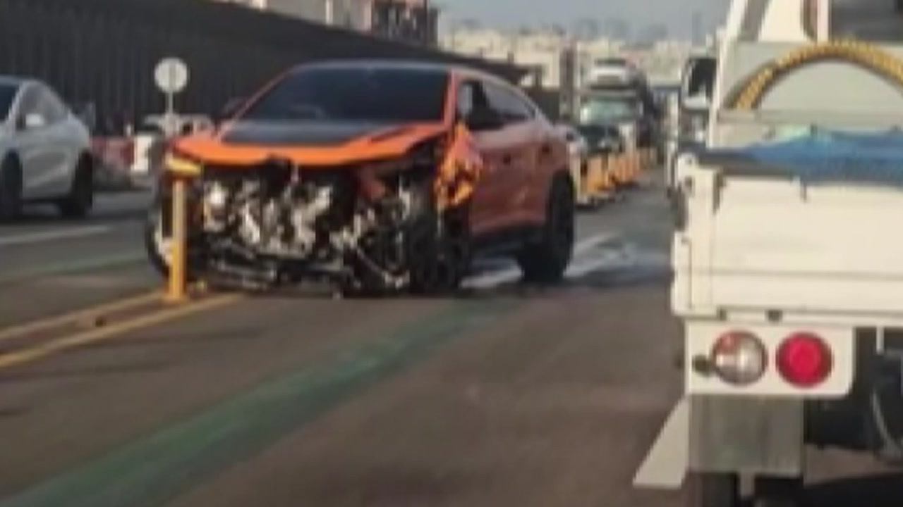 대로를 달리던 람보르기니 차량이 중앙선을 넘어 차량 3대를 잇달아 들이받았습니다.