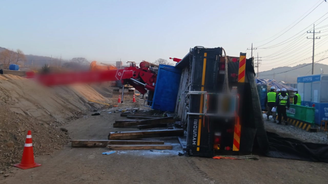 어제(15일) 오전 8시쯤 인천 강화군 불은면에 있는 전력 설비 공사장에서 자재를 들어 올리던 25톤 크레인이 옆으로 넘어졌다는 신고가 접수됐습니다.