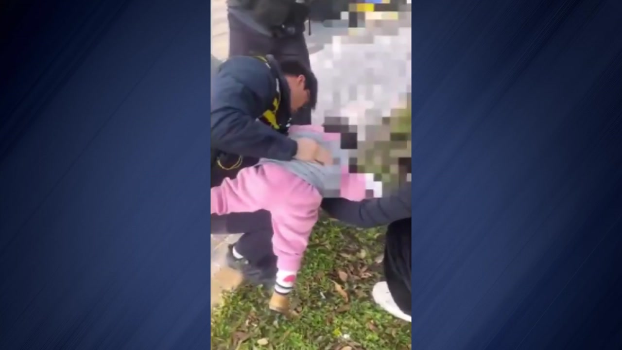 제주시 신제주입구 사거리, 경찰이 아이를 거꾸로 들고 등을 두드리고 있는데요.