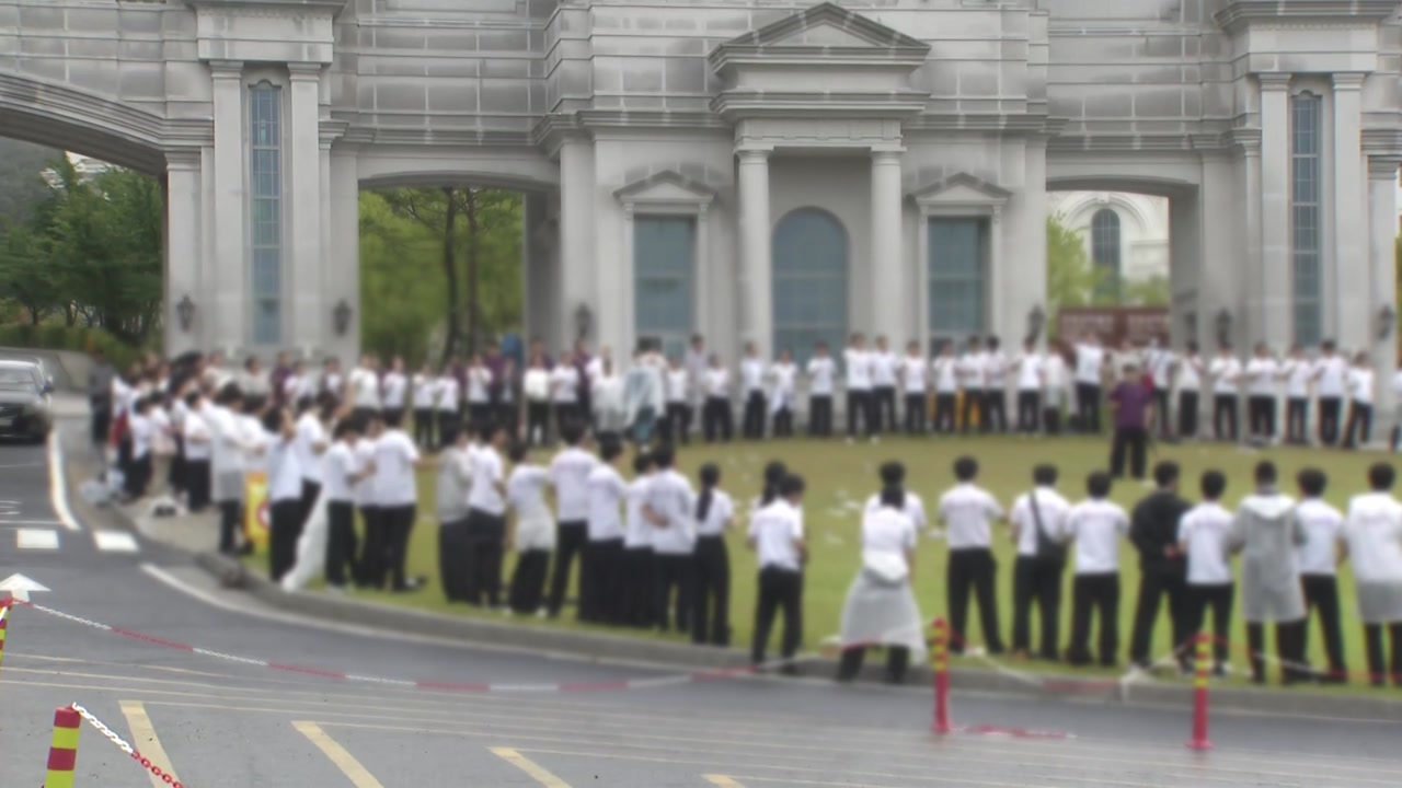 지난 7월, 특검이 통일교 본산인 경기 가평군 천정궁 압수수색에 나서자 기도에 나선 신도들입니다.