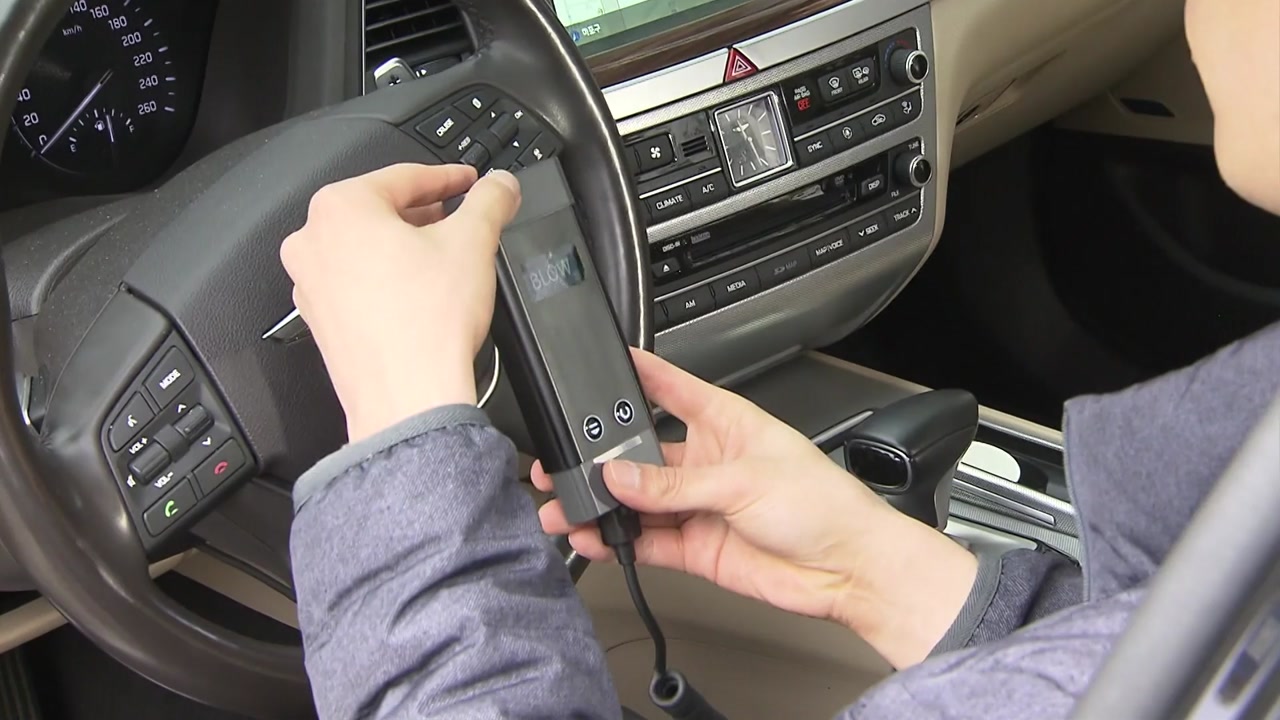 차량 핸들 아래 손바닥 크기의 음주측정기가 달려있습니다.