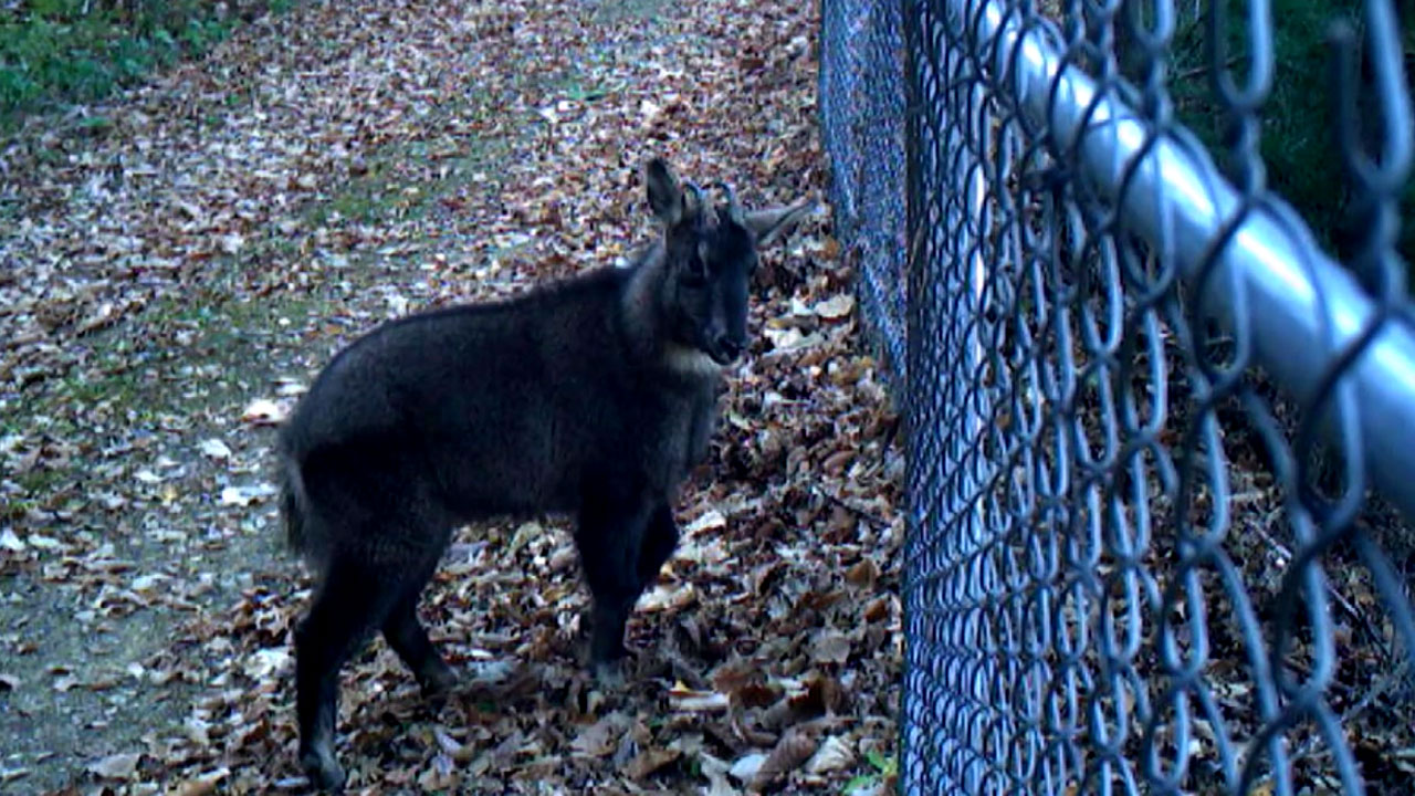 울타리에 둘러싸여 섬처럼 고립된 산비탈에서 살아남은 산양 가족이 포착됩니다.