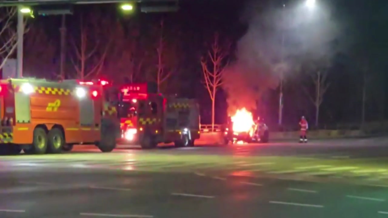 어젯밤(31일) 11시 50분쯤 경기 화성시 남양읍에 있는 교차로에서 승용차 한 대에 불이 났습니다.