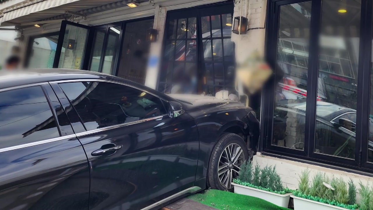 이 사고로 카페 손님 2명이 넘어지며 가벼운 찰과상을 당한 것으로 파악됐습니다.