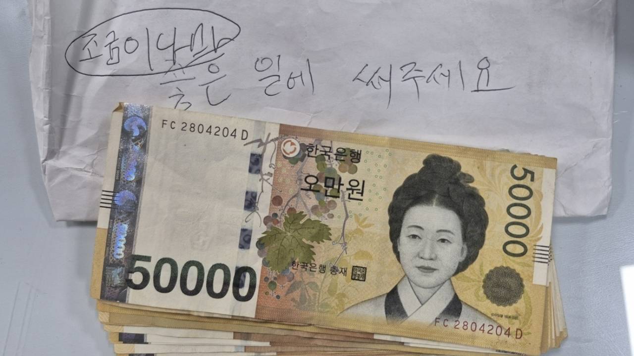 인천 강화군 청사에서 익명의 기부자가 남긴 현금과 손글씨 메모가 발견돼 잔잔한 감동을 전하고 있다.